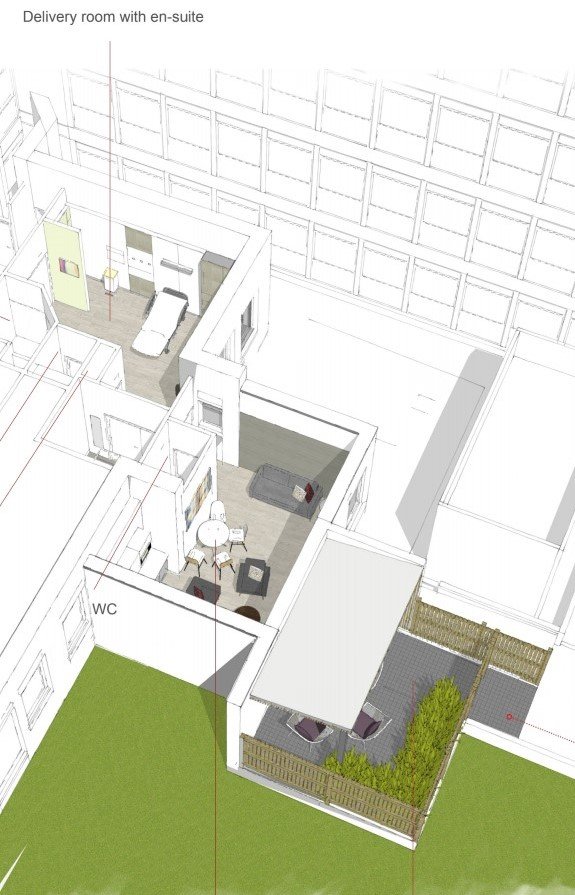 The Ocean Pearl Suite is a Maternity Bereavement unit that has just opened at Hillingdon Hospital. The idea came from Jo Dunckley - the Labour ward manager, who knew the benefits of such a facility from working in a previous hospital. This Suite however is unique. The key features were specified by women who have gone through the tragically sad experience of giving birth to a sleeping baby. The suite has: a delivery room where with a sofabed; an en-suite shower room; a midwife base where the midwife can be on hand when needed; a self-contained lounge with a visitor toilet and further sofabed for family staying over; a kichenette with microwave and fridge; a cottage garden with garden furniture; and a separate entrance/exit away from the Maternity entrance/exit. The suite is soundproofed so that live babies in Maternity cannot be heard.